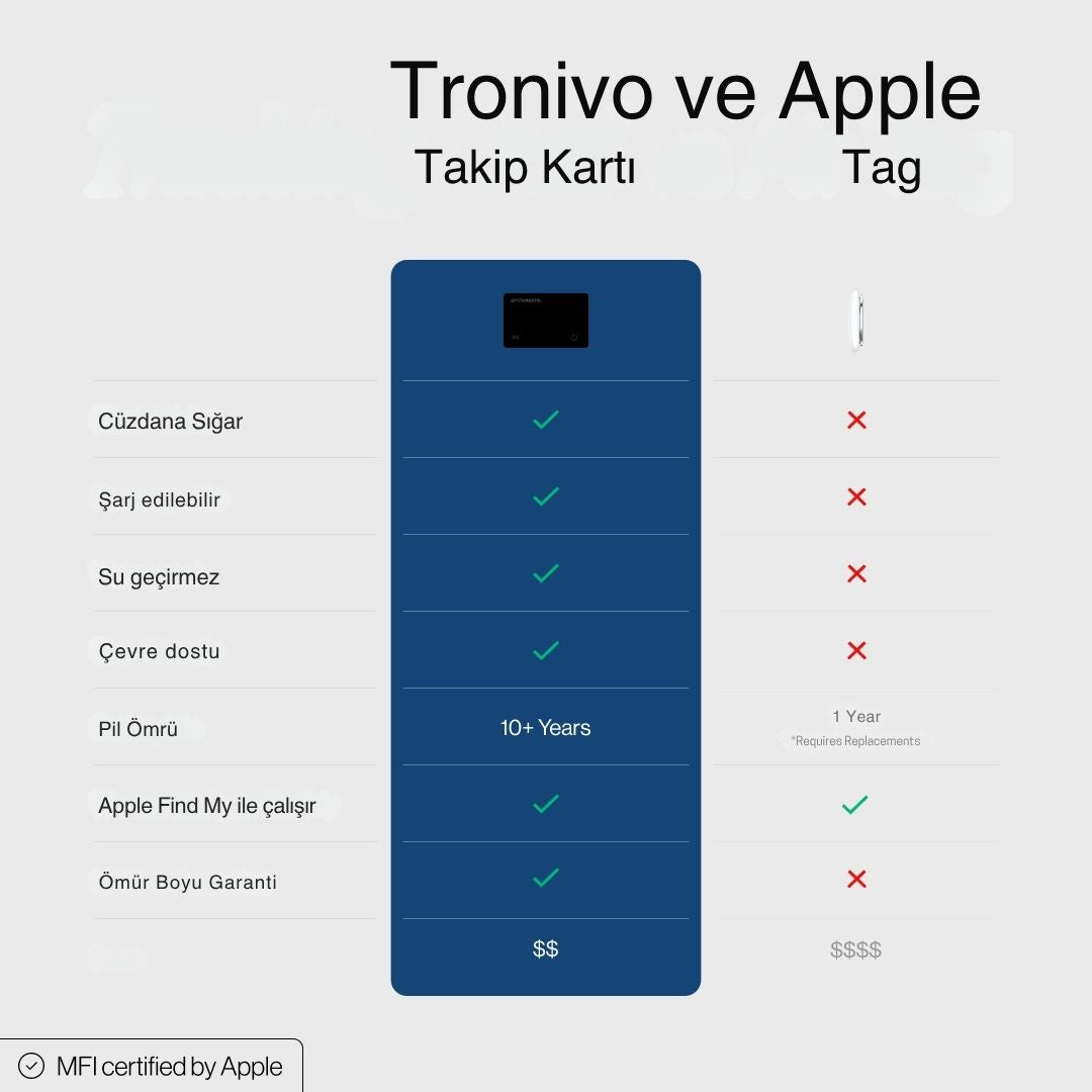 Tronivo Takip Kartı - Apple Find My (Bul) Uyumlu Cüzdan ve Eşya Bulucu